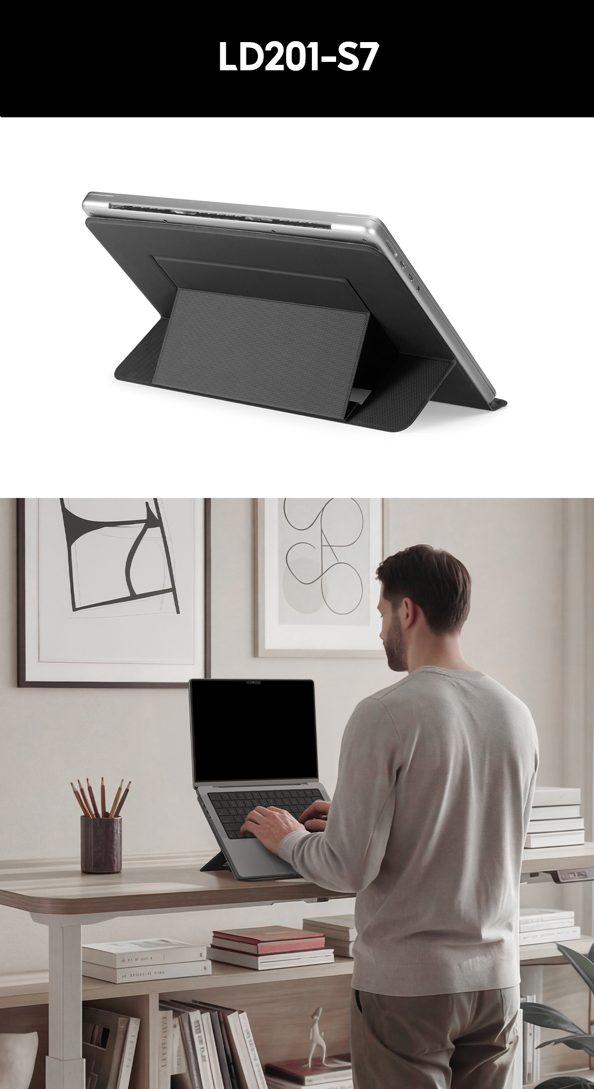 Keep it up. The LD201 Laptop Stand makes your laptop its peak priority. Its adjustable design maximizes your workflow and your laptop’s airflow. When you’ve got to go, collapse it and stow it away in a jiff. Heighten your productivity in every scenario. We got you.