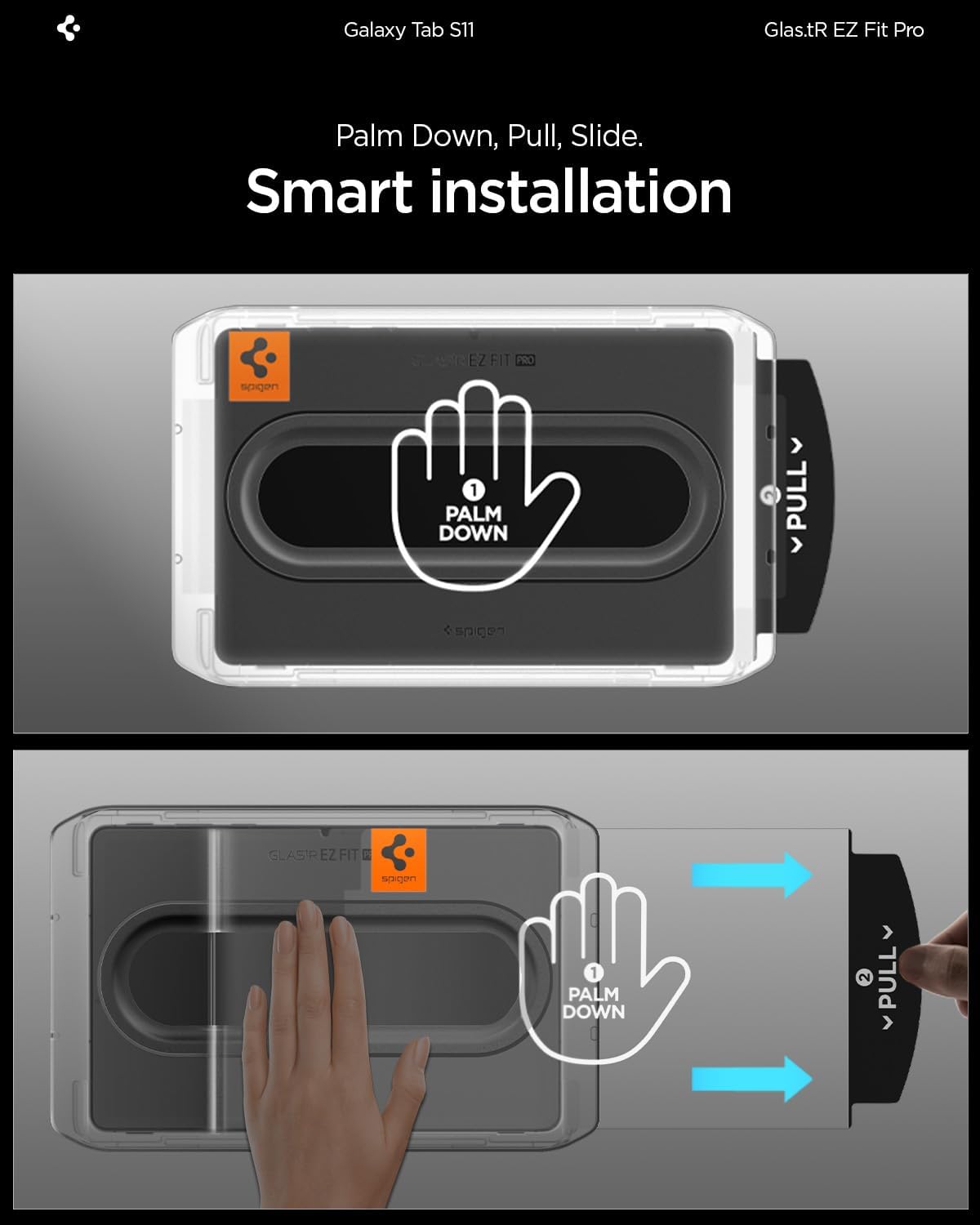 Less time, guaranteed alignment. Samsung Tab S11 Screen Protector Glas.tR EZ FIT comes with an innovative tray designed to eliminate the time wasted to achieve the greatest alignment. Simply place the tray over the phone, press the center and watch the glass adhere in place. Shield the screen with 9H hardness Glas.tR EZ Fit with the latest and easiest technology.