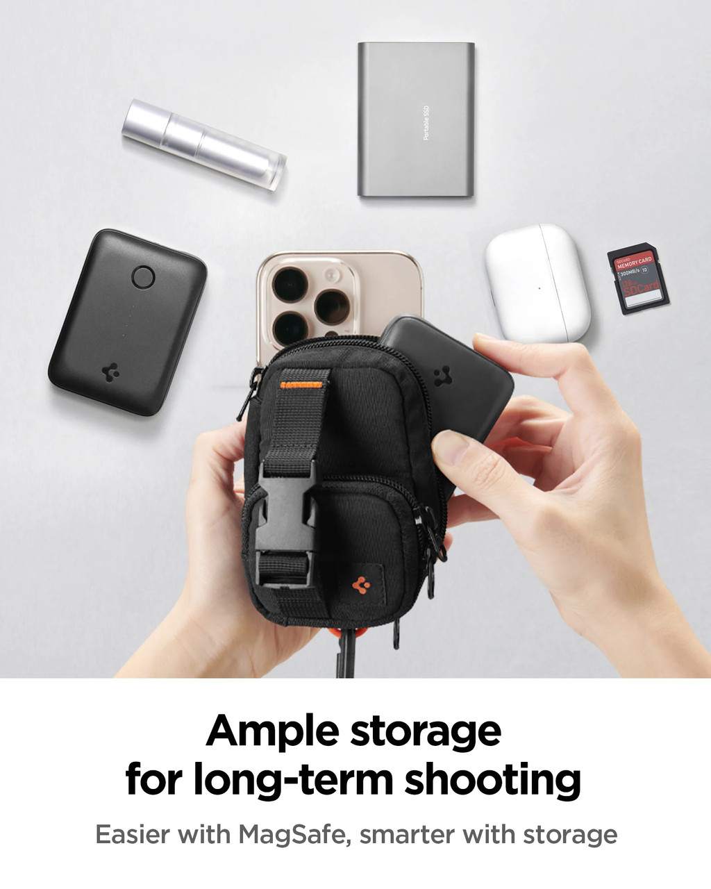 2 main pockets for AirPods and more, and 1 side slot to hold your lip balm