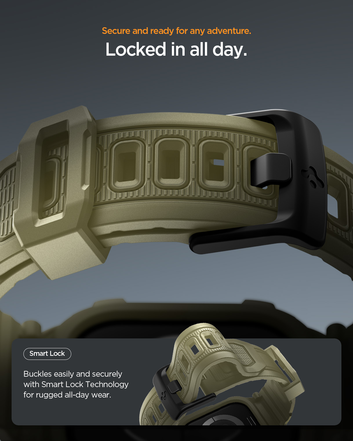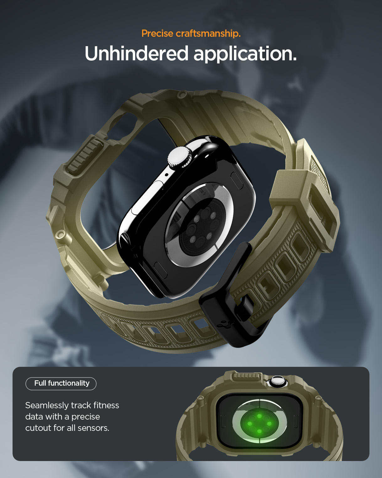 The Rugged ArmorĀ® Pro 2 comes in a uni-body frame that includes an adjustable band with a protective cover for the watch. Made of a flexible yet durable material, the case handles all unwanted impact while staying extremely easy to put on and remove. Rugged Armor Pro 2 bears all Watch compatibility in mind working with all the Apple Watch Series. Bolster the watch with defense with the all-new Rugged ArmorĀ® Pro 2.