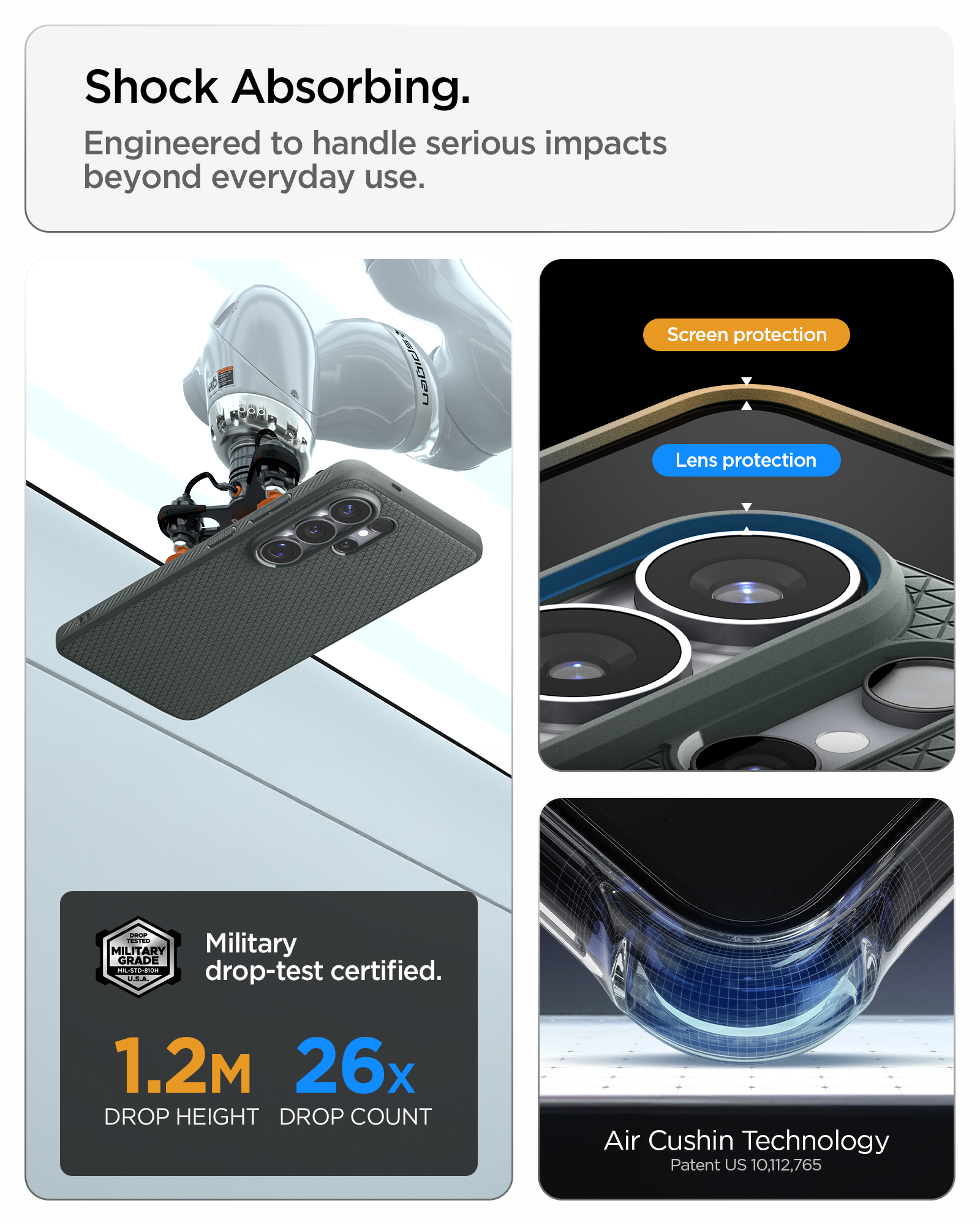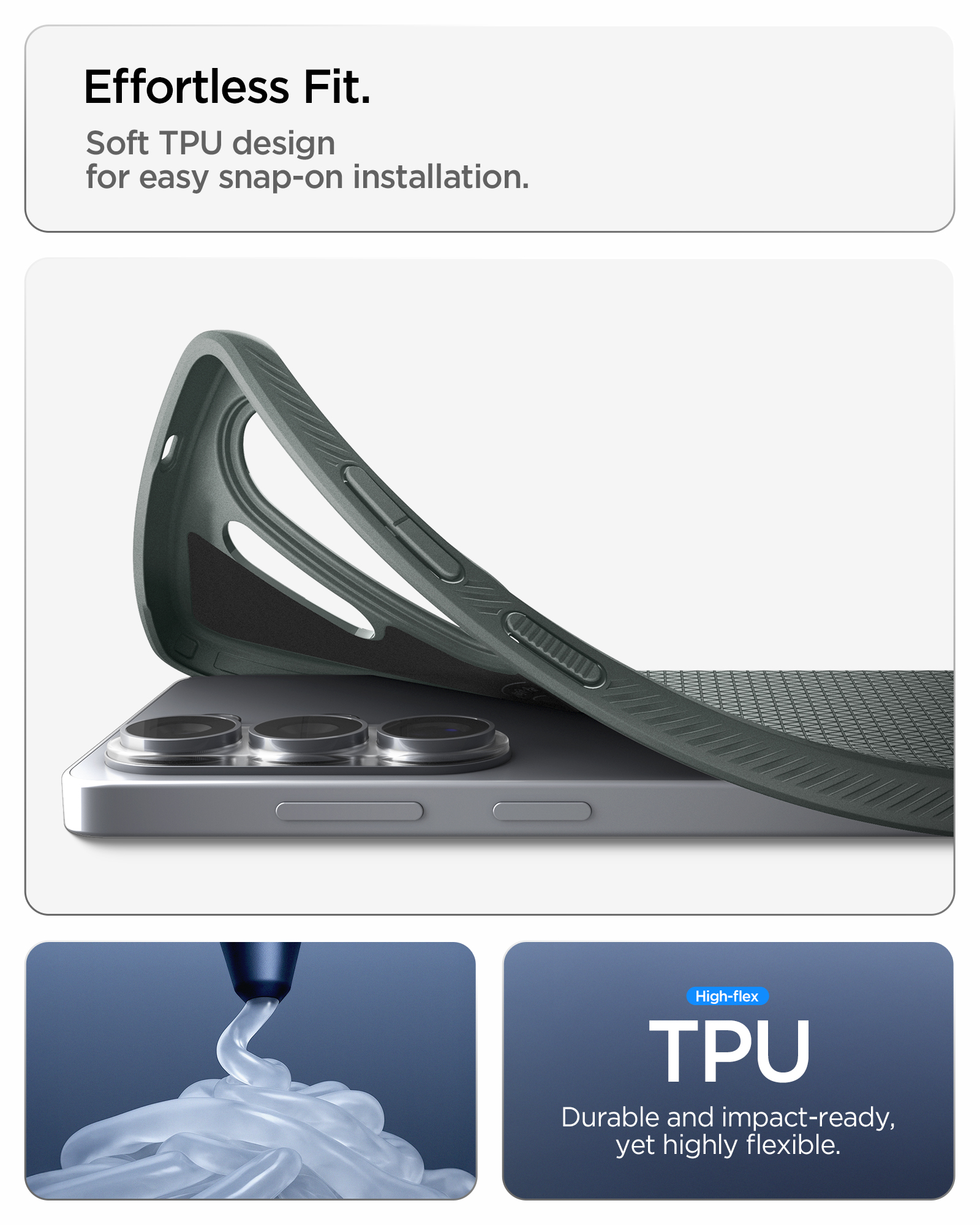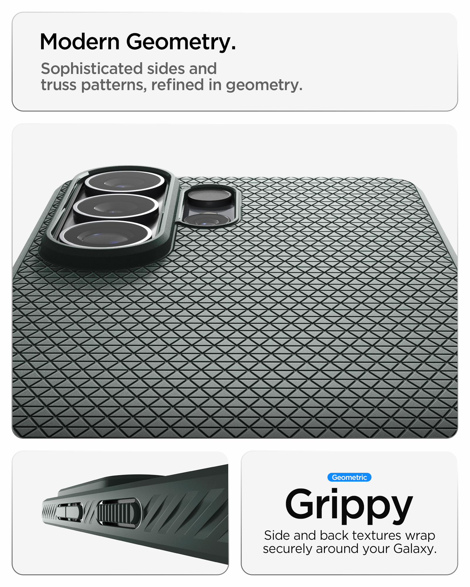 Go with the flow. The Liquid Air brings a refreshing look to your new Galaxy S26. Its geometric design provides protection and grip at all angles. Feel comfortable holding your device without all the extra bulk. The perfect grip meets the right amount of drip.