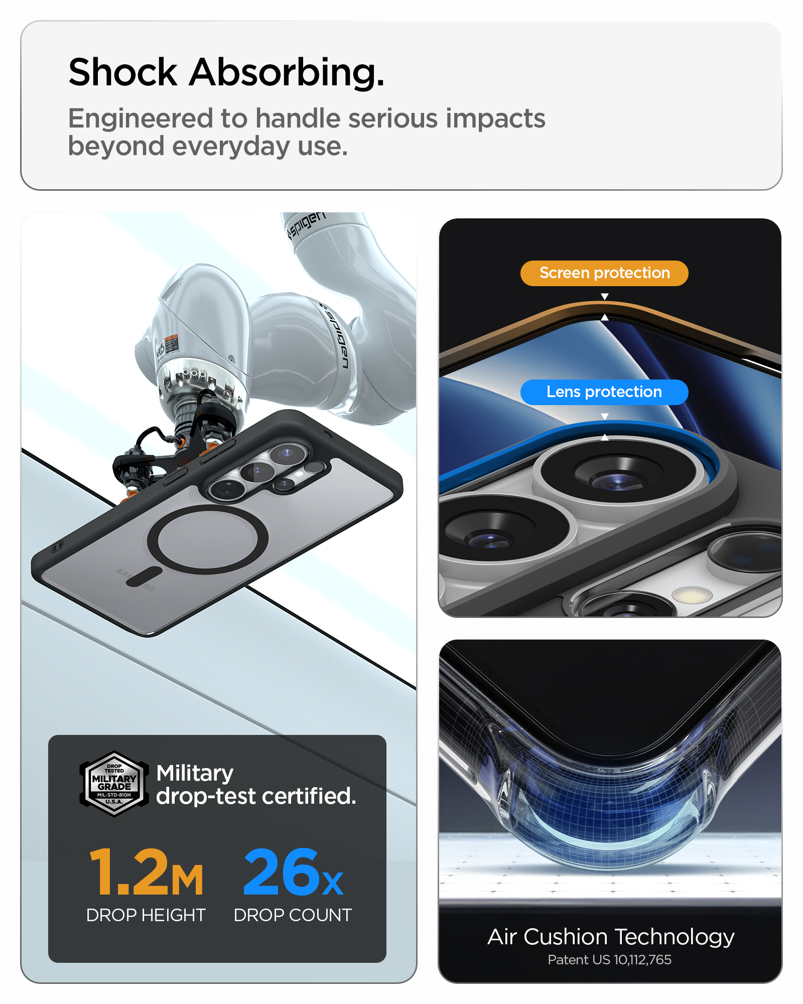 Mil-grade certified drop protection with Air Cushion Technology®