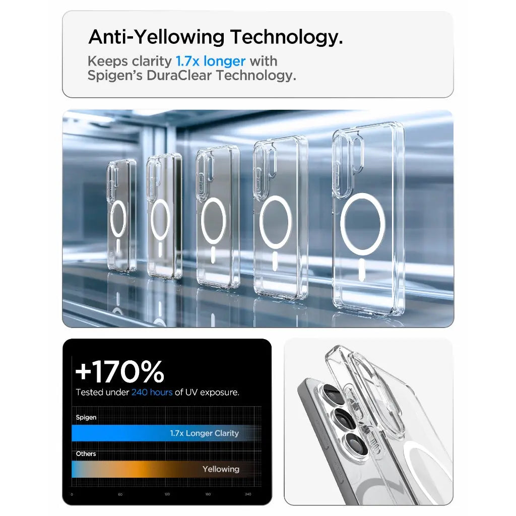 The clear choice. The Ultra Hybrid shows off your Galaxy S26’s iconic design. Never let the minimalist dream end with daily protection that keeps you in the clear from drops and scratches. Snap-on Mag Fit accessories easily with improved magnetic strength for ultra utility. We got you.