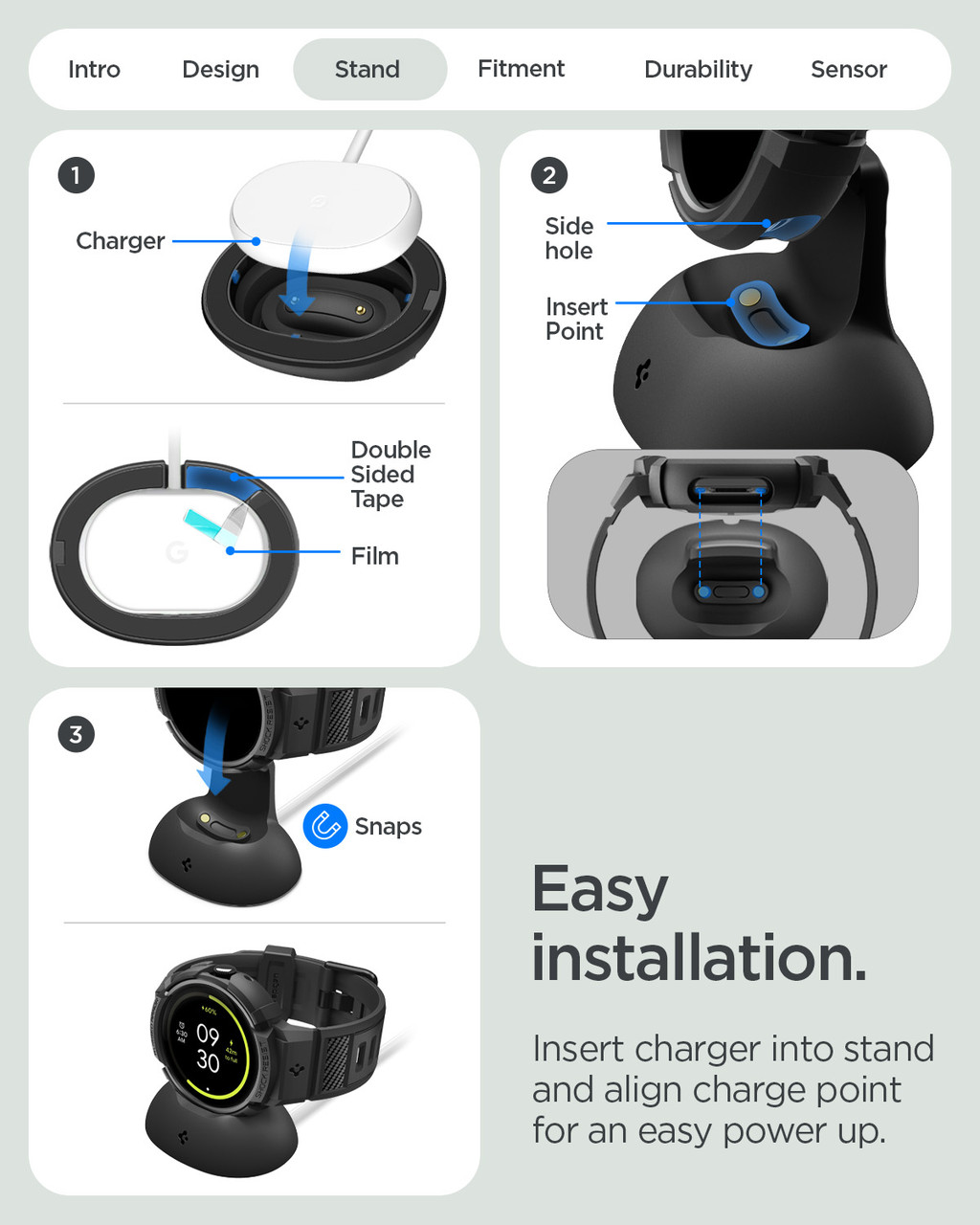 Charger stand included: Includes a charger stand for easy charging without taking off the case
