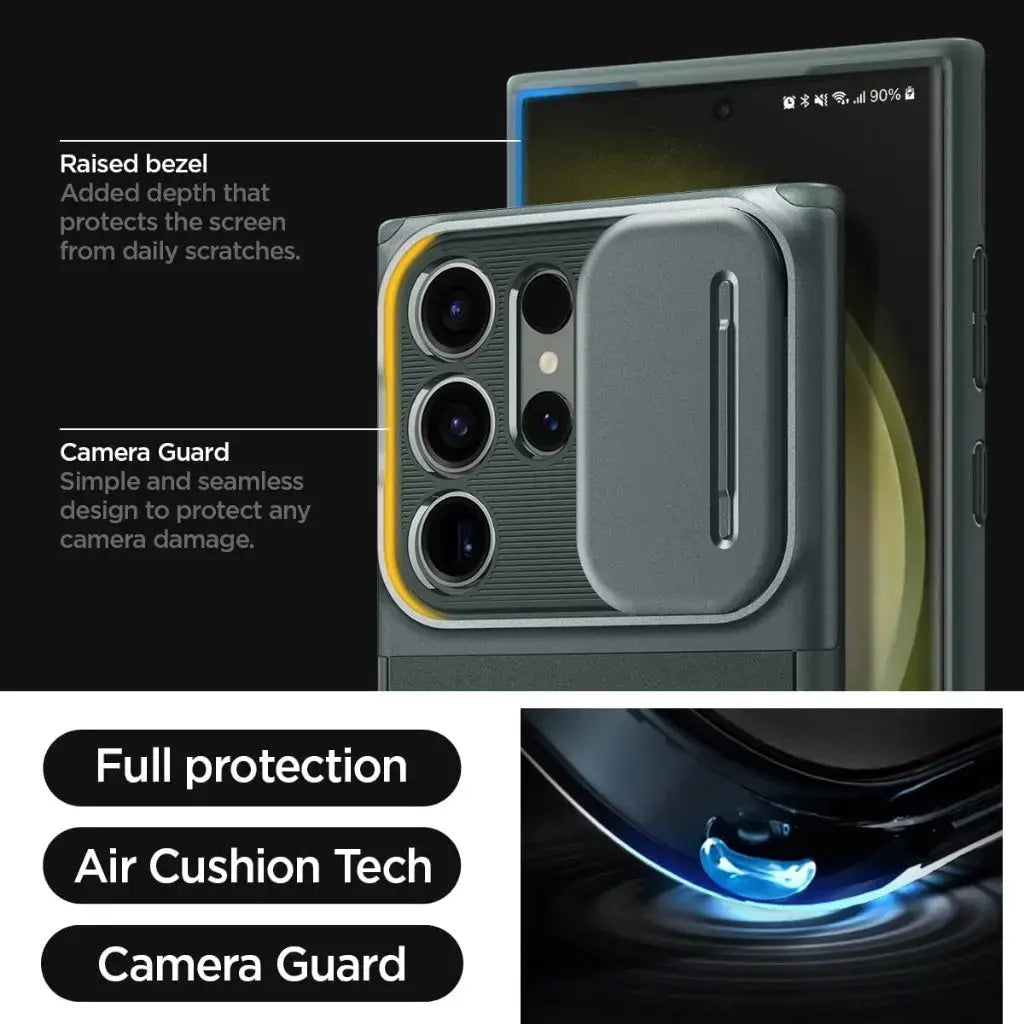- Reinforced camera protection with the slide cover