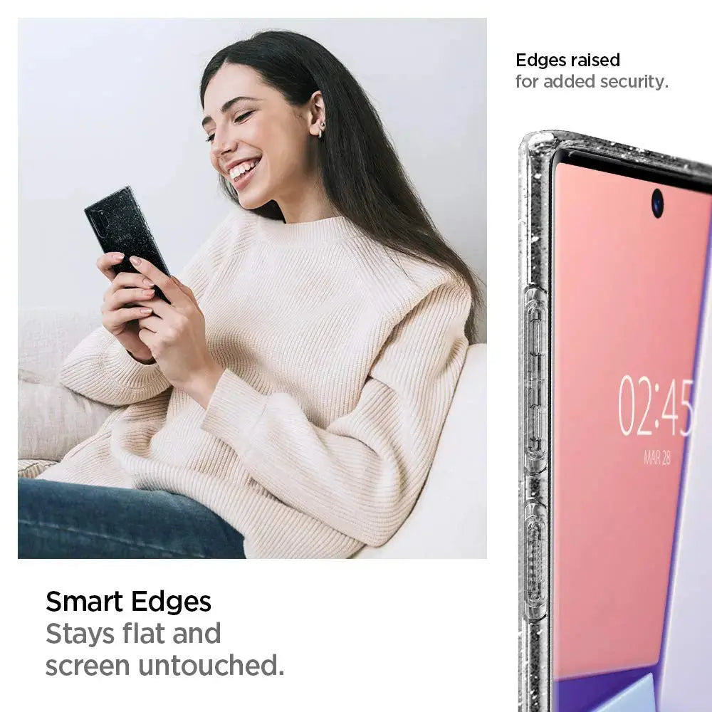 Shining. Shimmering. Protected. Liquid Crystal Glitter streamlines a whole new dimension to your Galaxy Note 10 Plus. Its form-fitting design keeps everyday dings and scratches away. Wherever you go, always behold the splendid style of your Galaxy.